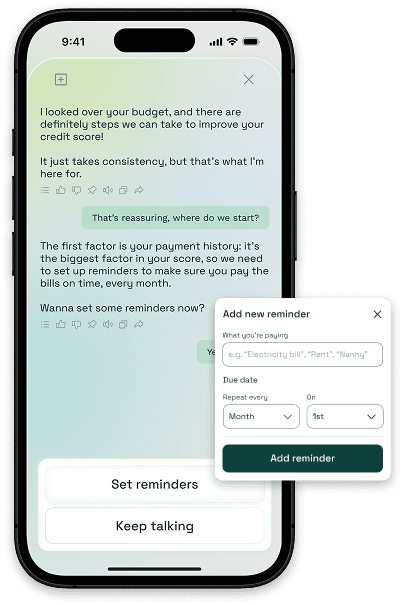 Vera is your AI money expert and trusted coach. She gives you the tools and guidance to master your money, and she’s always there to listen, whether you want to share worries, big dreams, or goals. She's always up for a good talk, money related or not! Vera learns from every conversation to provide deeper support and more personalized suggestions.